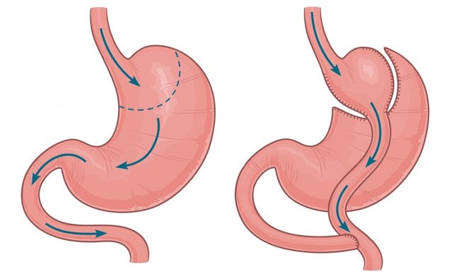 Mide Bypass (Roux-en-Y Gastric Bypass – RYGB), mide hacmini küçülterek (%90 azaltma) ve ince bağırsak yolunu değiştirerek emilim azaltma