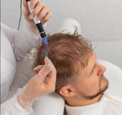 Saç mezoterapisi, vitamin, mineral, amino asit, büyüme faktörleri ve dolaşım artırıcı ilaçların kafa derisine mikro iğnelerle (0.5-1 mm)